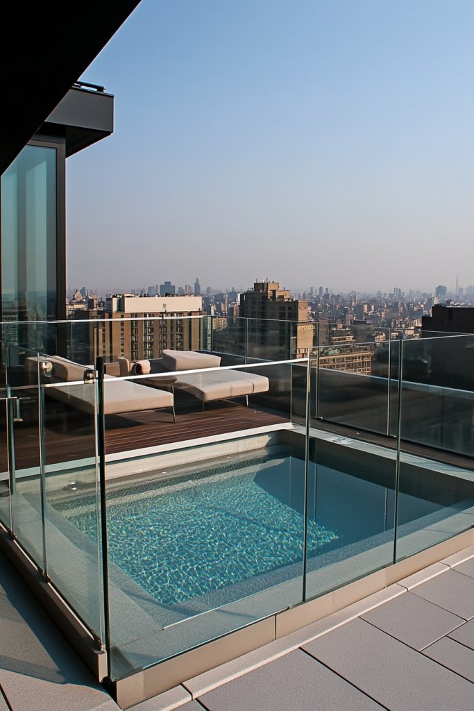 15. Rooftop Pool with Glass Barriers and Lounge Area