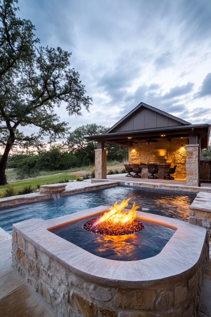 17. Pool with Built-In Fire Pit or Hot Tub Combo
