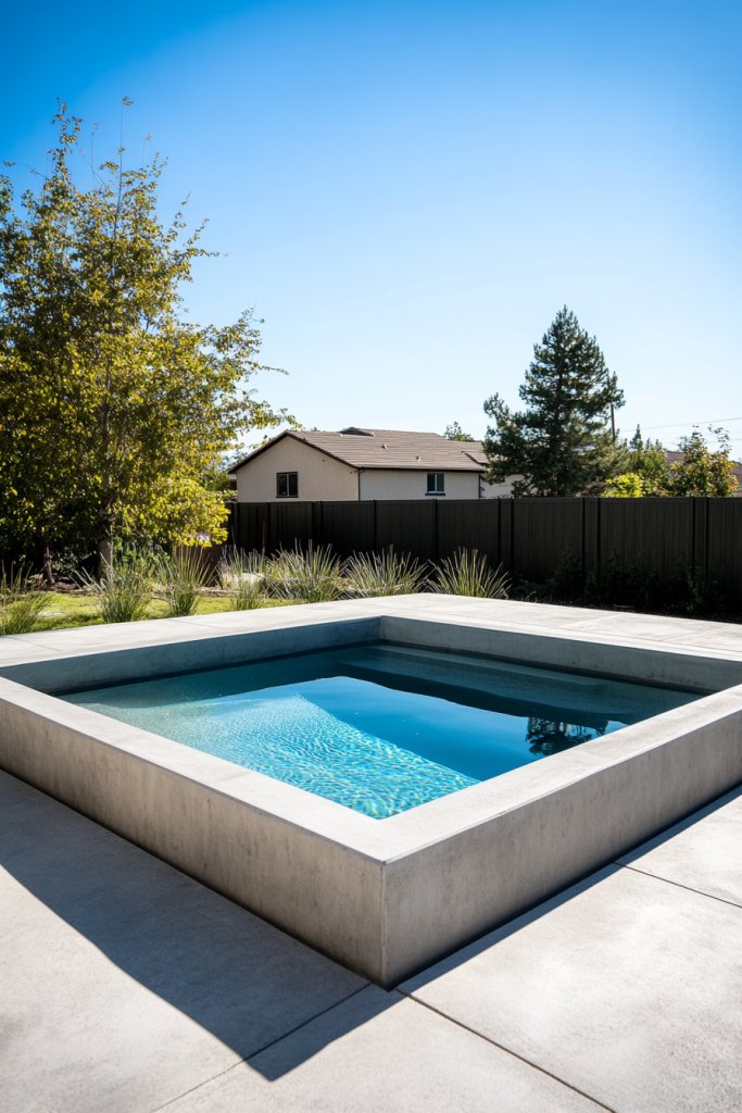 Choose finishes like brushed concrete or colored stains to customize the look. For smaller yards, limit the pool size and opt for integrated steps or shallow lounging areas. During colder months, consider adding a retractable cover or safety screen to protect the surface. You can also experiment with different edge treatments—metal trims, tiled borders, or textured concrete—to match your style. The minimalist approach allows for versatile styling, from ultra-modern to industrial chic.