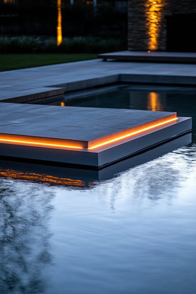 6. Floating Pool Platforms with Integrated Lighting