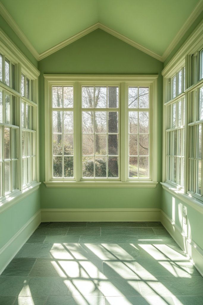Craving a connection to nature that’s easy to maintain? Light sage green offers an earthy, calming vibe that promotes relaxation and wellness. It’s a perfect choice for a sunroom meant for meditation, reading, or quiet reflection. Who knew a paint color could be so grounding?