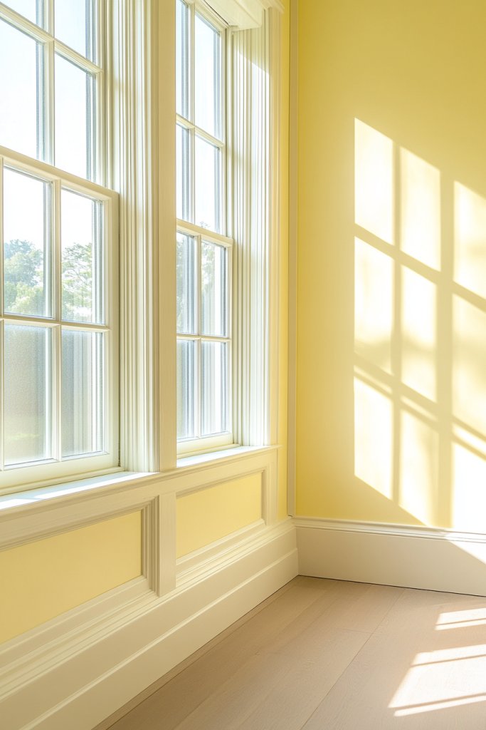 Imagine walls painted in a cheerful buttercup or golden hue that radiates warmth. Sunlight reflects off the bright surfaces, illuminating every corner of the room. Pair it with crisp white trim and lively accents like colorful cushions or artwork to amplify the joyful vibe. The space feels alive, welcoming, and full of positive energy.