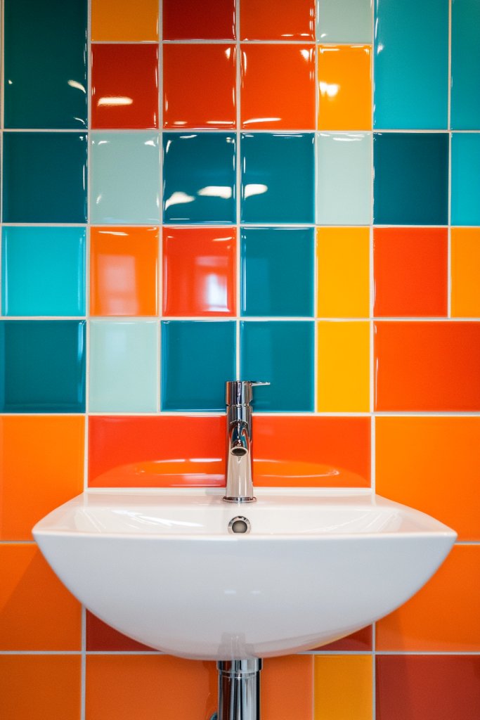 Start by selecting high-quality, water-resistant tiles suited for bathroom environments. Opt for vibrant colors that won’t fade over time. Use a professional or a DIY-friendly tile adhesive to set the tiles, ensuring a smooth, even surface. Consider creating a feature wall or a border to maximize visual impact without overwhelming the space. Grout color can complement or contrast the tiles—white or light gray is safe for a clean look, while darker grout adds definition. Seal the tiles properly to prevent staining and water damage.