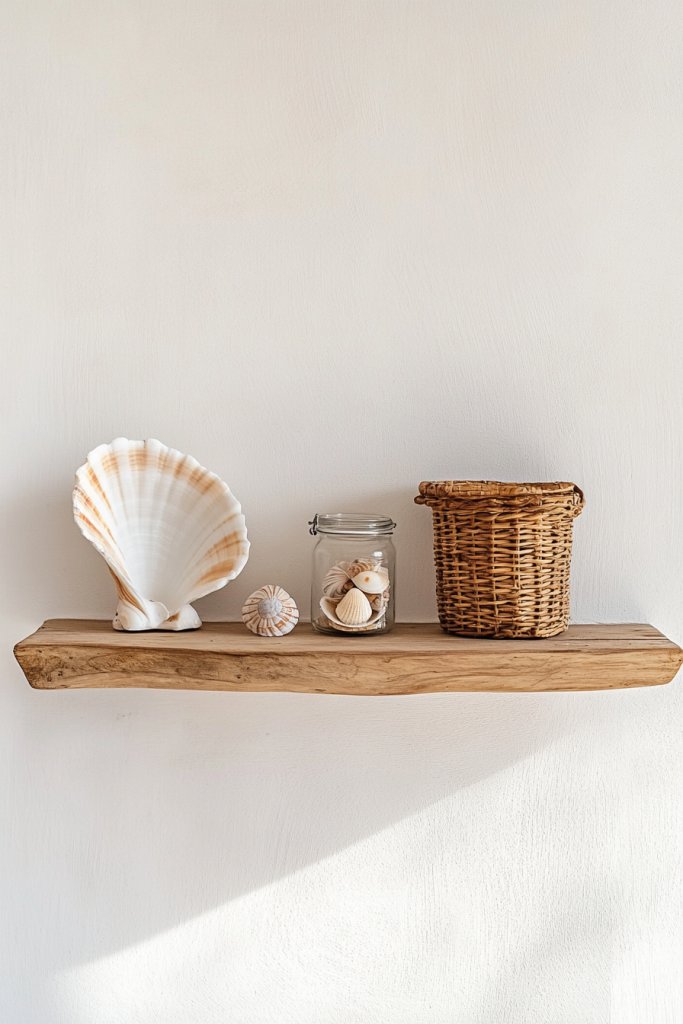5. Utilize Open Shelving with Nautical or Natural Decor Elements