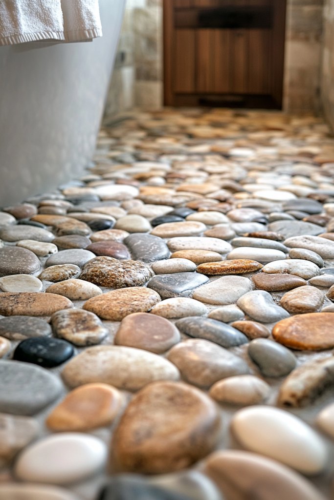7. Use Stone or Pebble Flooring for a Spa-Like Experience