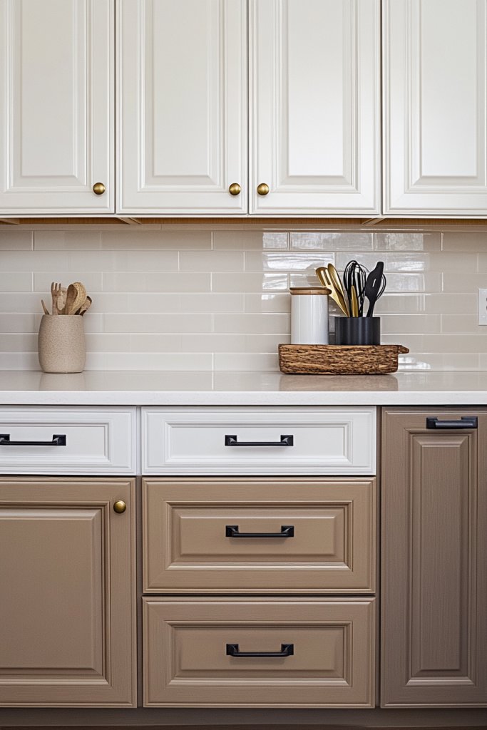 11. Two-Tone Cabinets with Contrasting Handles and Hardware