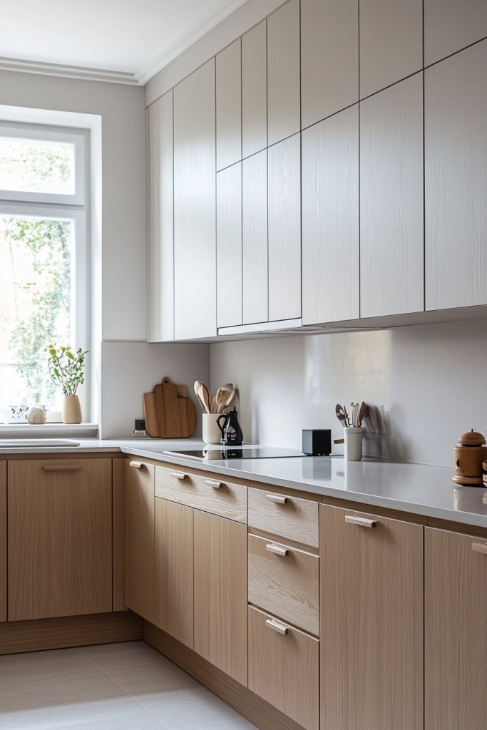 14. Two-Tone Scandinavian-Style Cabinets in Neutral Shades