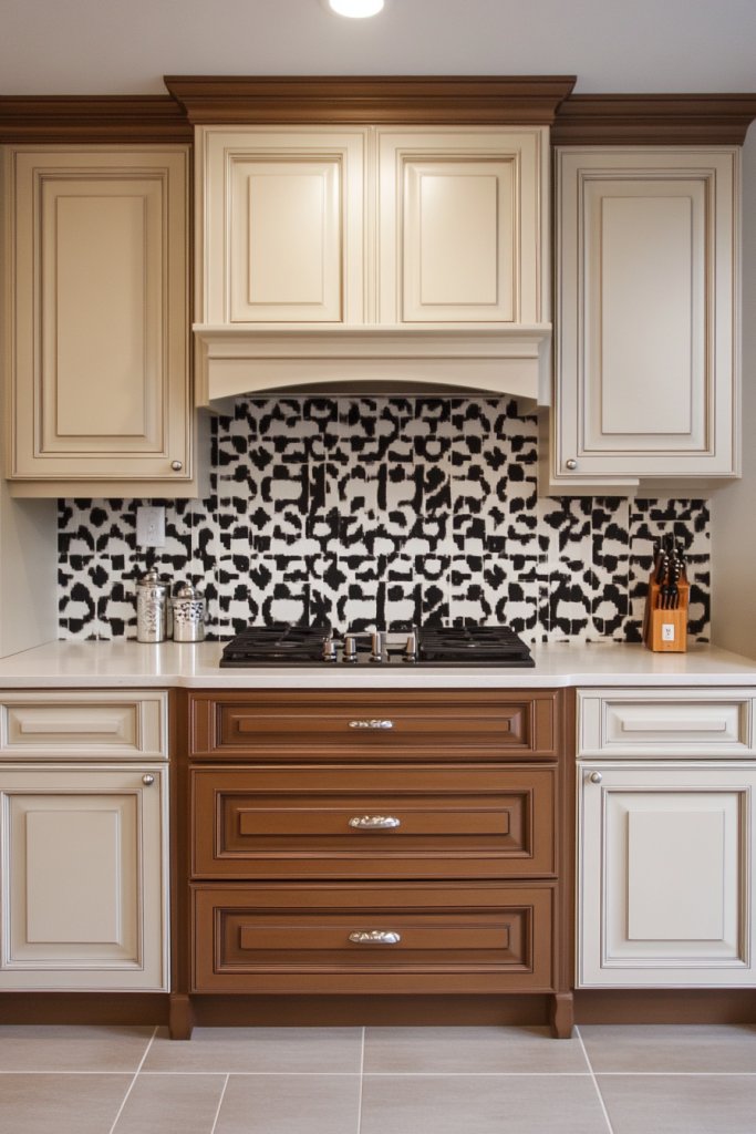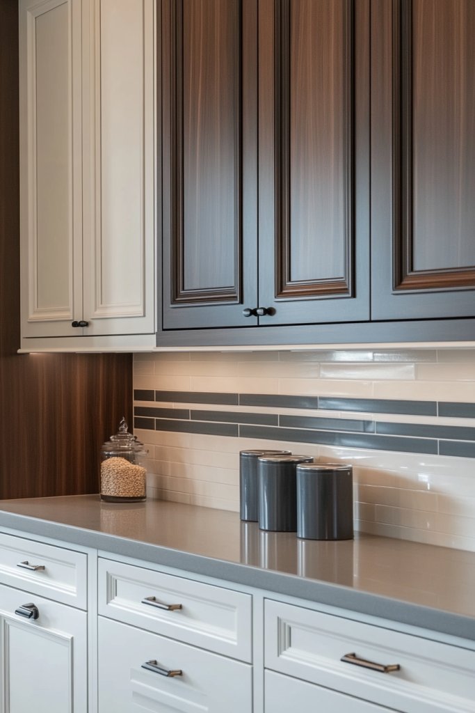 17. Two-Tone Cabinets Paired with Contrasting Backsplashes