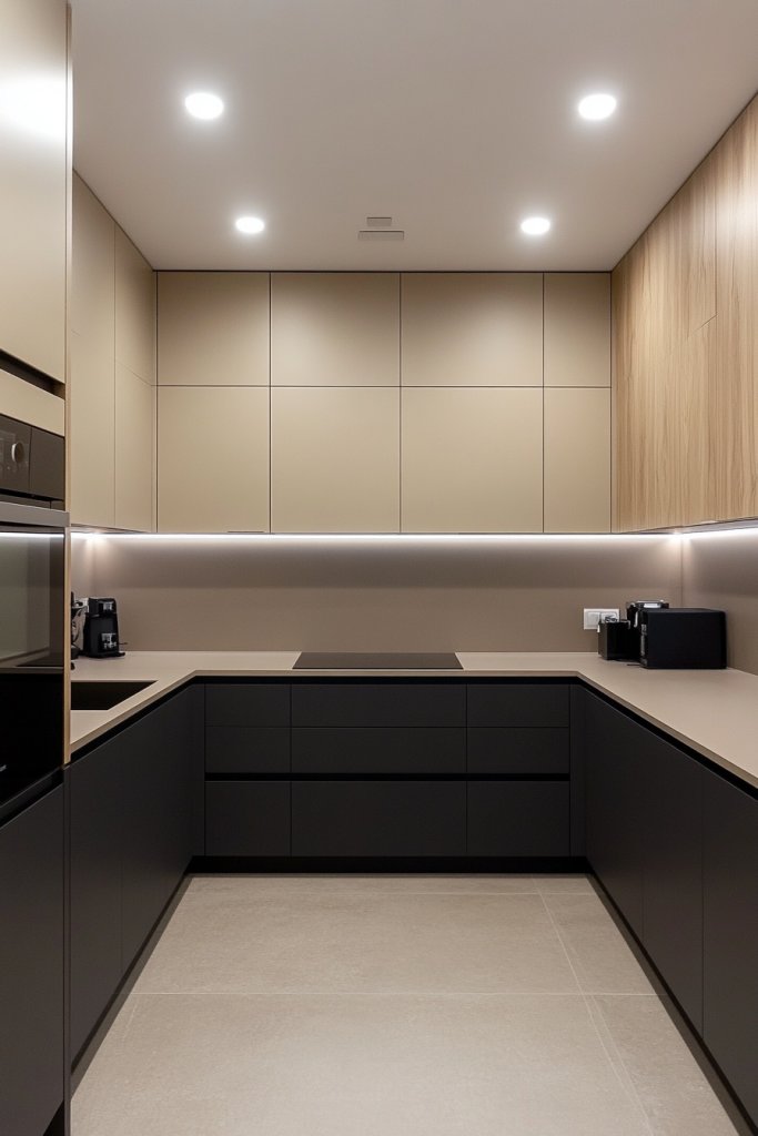 8. Two-Tone Minimalist Cabinets with Matte Finishes