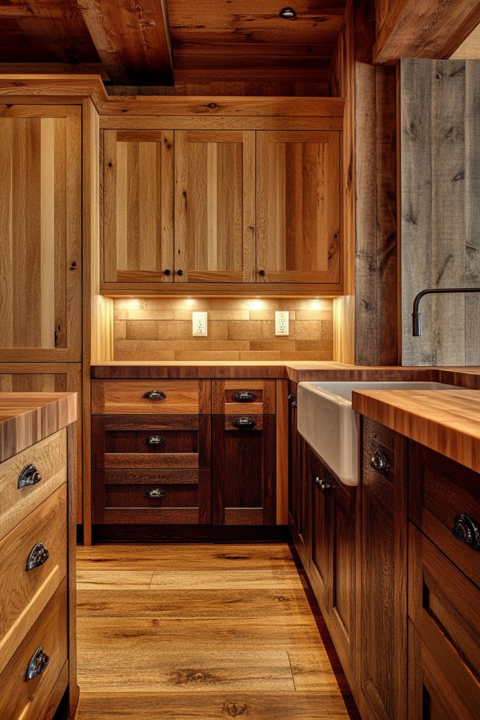 2. Warm Two-Tone Wood Finishes for Cozy Rustic Charm