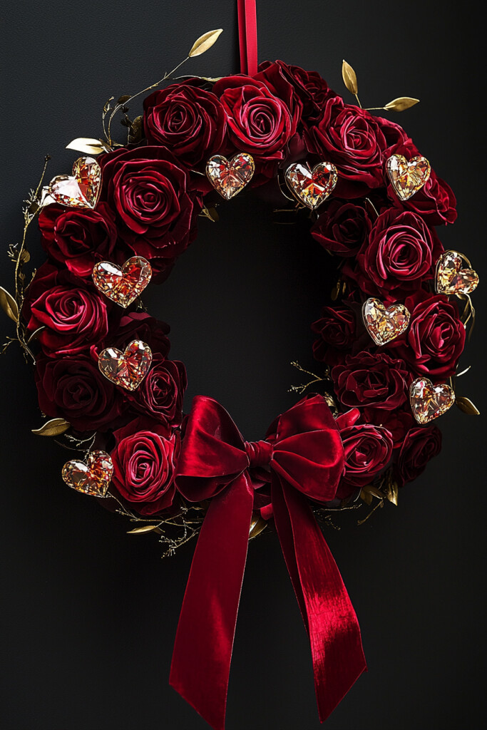 This wreath is perfect for those who love dramatic, high-end Valentine’s décor. It pairs beautifully with black, gold, or dark red interiors for a sophisticated ambiance.