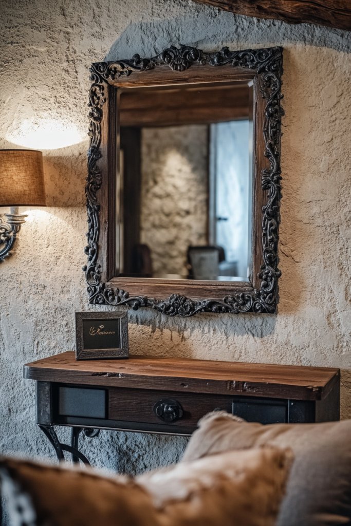 Customize your mirror with carved or engraved details. Add decorative hardware or leather straps for a handcrafted touch. Incorporate seasonal accents like faux antlers or metal stars nearby. Use the mirror as a backdrop for lighting or artwork to further enhance its appeal. It’s a versatile piece that can evolve with your decor.