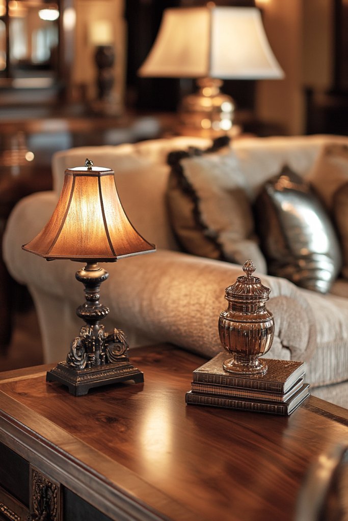 Choose from chandeliers with wrought iron detailing, vintage lanterns, or wall sconces with exposed bulbs. For a more modern twist, incorporate fixtures with aged brass or copper finishes. You can hang multiple small lanterns for layered lighting or a large statement piece for focal interest. Seasonal lighting options, like string lights or candle lanterns, can also be added for variety.