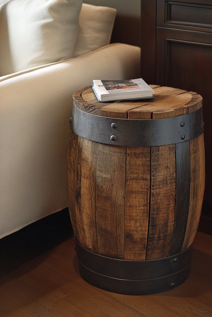 Choose between metal, wood, or mixed-material barrels depending on your decor. Use them as standalone accent pieces or pair with other rustic furniture. They can be left natural or painted for a more refined look. Seasonal decor like dried flowers or small lanterns can be added to change the mood. Their compact size makes them versatile for different room layouts.