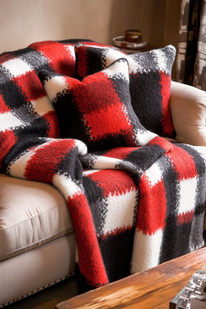 4. Cozy Wool or Plaid Throw Blankets and Cushions