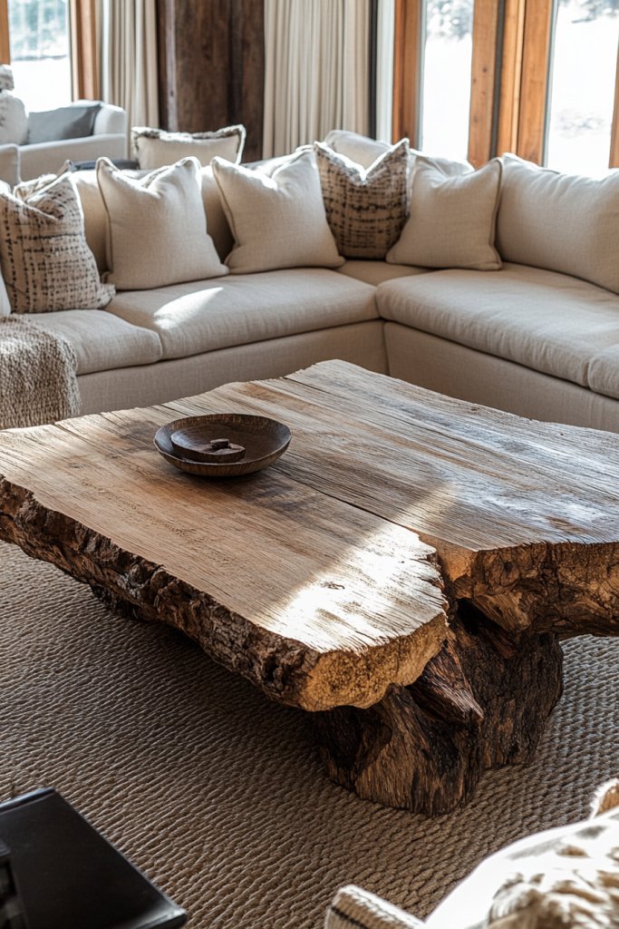 Want a centerpiece that screams rustic charm and durability? A log or timber coffee table is exactly that. It anchors your living room with organic, rugged appeal and adds a natural touch. Plus, it’s a conversation starter every time friends visit.