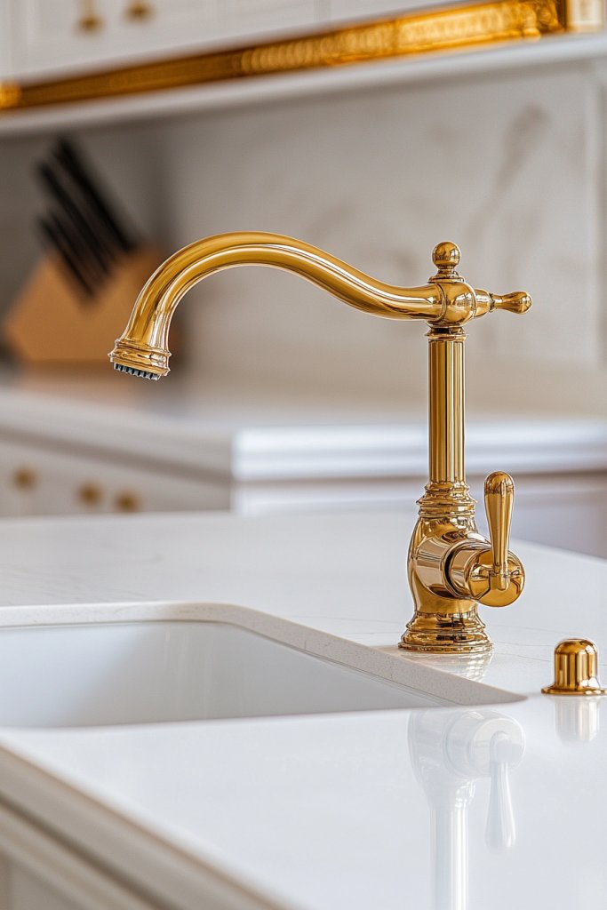 6. Gold-Accented Kitchen Faucets and Fixtures