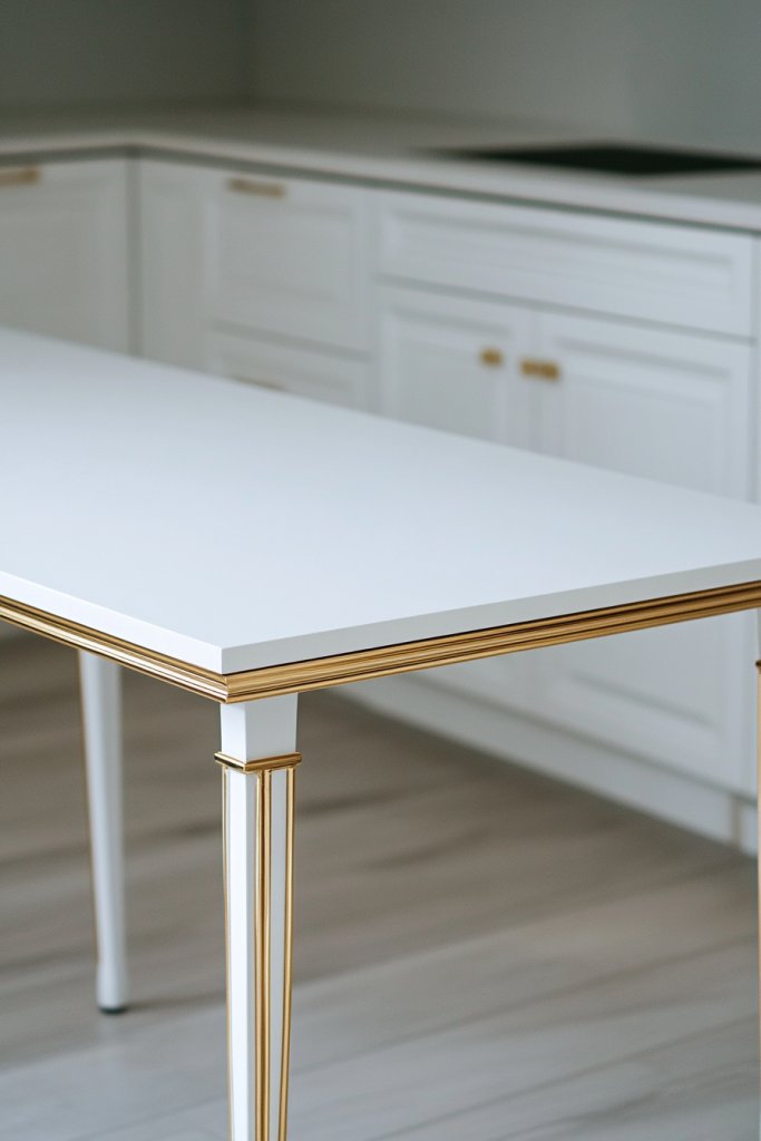7. White Kitchen Table with Gold Detailing