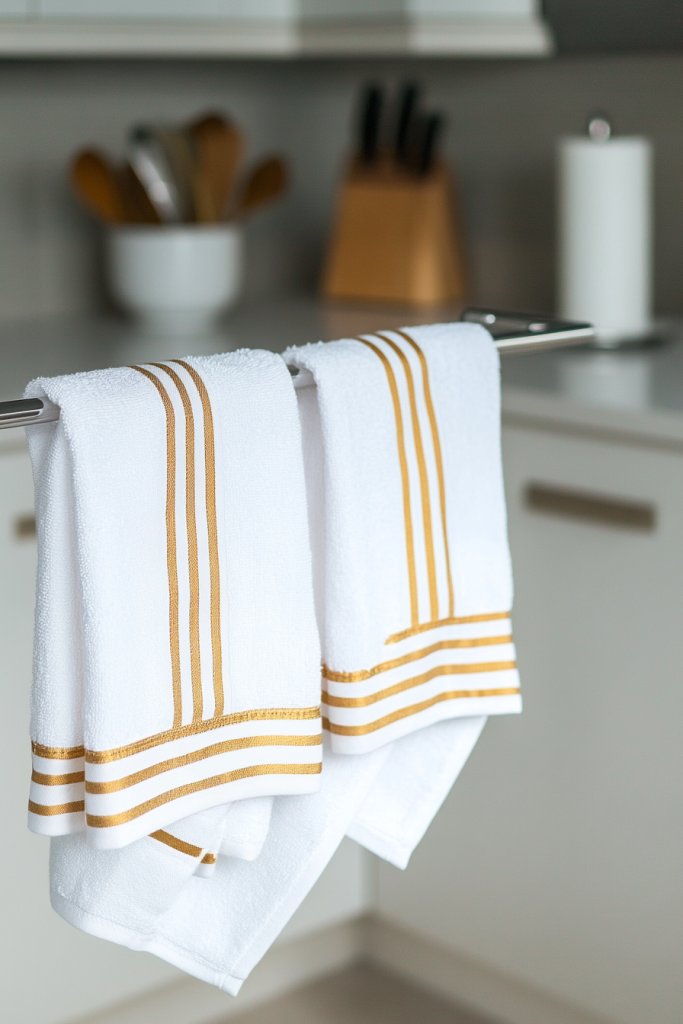 9. White and Gold Decorative Kitchen Towels and Textiles